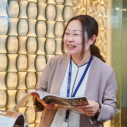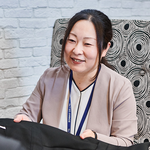 前職は食品スーパー内で、お客様とメーカーの橋渡しをする部署で仕事をしていました。ですが次第に、お客様の課題や理想の姿を共に考え、形にしていく仕事をしてみたいと考えるようになりました。「BMファンのユニフォームを通じて企業価値を高める」というコンセプトに惹かれ、私自身の「お客様とともに創る楽しさ」が生かせるのではないかと感じました。私はユニフォームは単なる作業着ではなく、誇りや気持ちを高めるアイテムだと思います。働く人々のモチベーションにつながるようなユニフォームを創り上げる仕事に携わりたいという思いから入社しました。